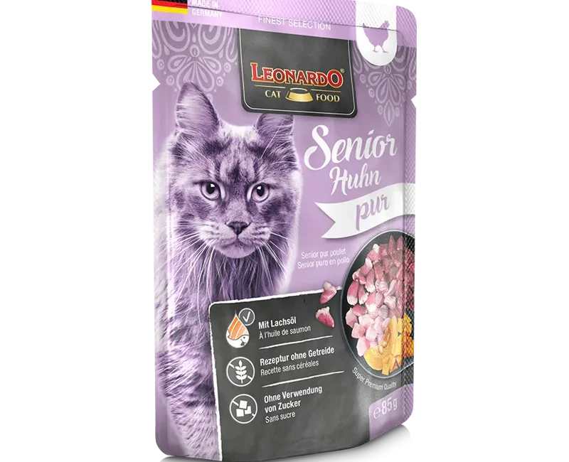 Un éxito incluso en la vejez: todo el mundo está de acuerdo en que el pollo es sencillamente delicioso y fácil de digerir. Por eso LEONARDO Senior puro en pollo también es adecuado para gatos que ya no tienen tantas ganas de experimentar a medida que envejecen o que necesitan...